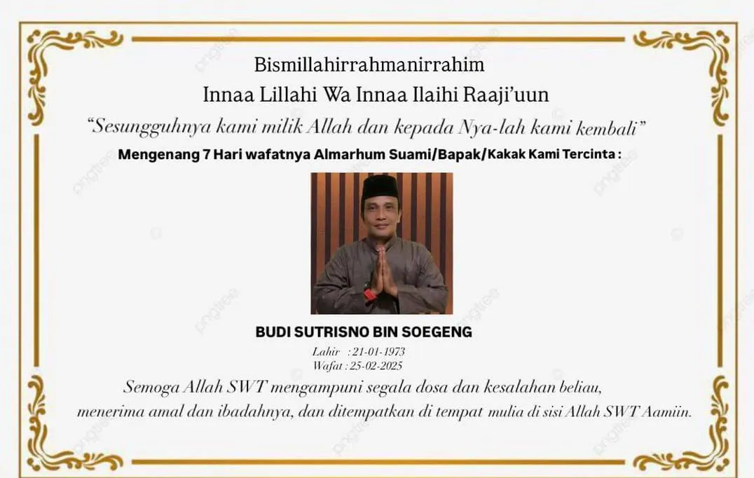 Tak hanya memperingati tujuh hari wafatnya Ustadz Nurhadi, acara malam itu juga dirangkaikan dengan peringatan 40 hari wafatnya Bapak Budi Sutrisno, atau akrab disapa Mas Jalu. Almarhum dikenal sebagai pribadi yang baik hati dan memiliki jiwa sosial tinggi di lingkungannya.