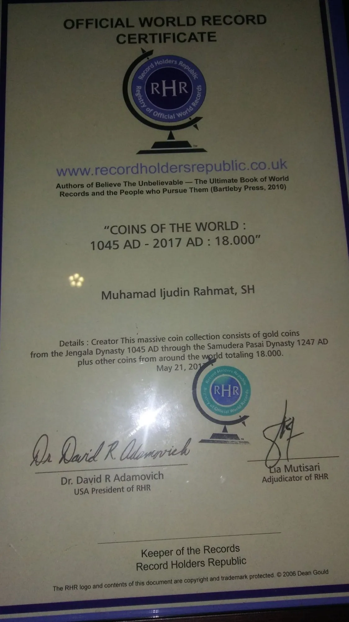 Sebagai informasi, Kang Zudin tercatat dalam Holden Record Inggris tahun 2016 sebagai pemilik koin emas kuno terbanyak di dunia, dengan koleksi mencapai 18.000 keping. Ia juga dikenal sebagai kolektor koin perak kuno yang bernilai tinggi.
