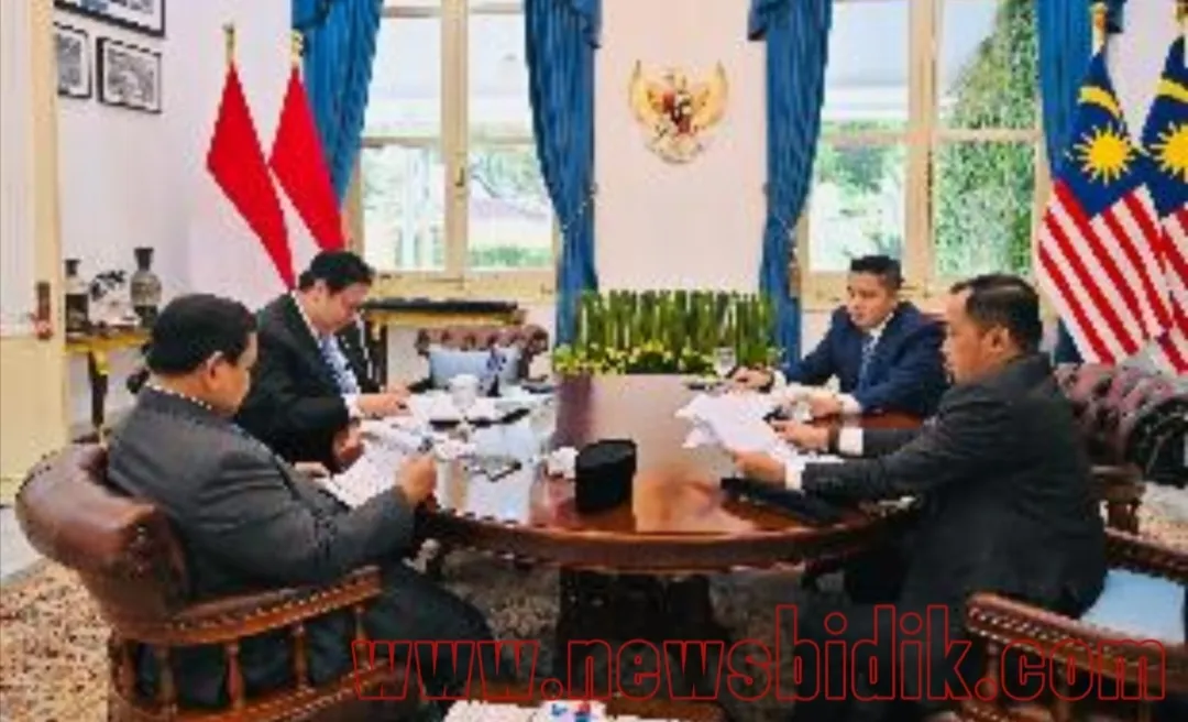 NEWS-BIDIK,//Jakarta, — Presiden Prabowo Subianto memimpin rapat terbatas (ratas) di Istana Merdeka, Jakarta, pada Jumat (27/6/2025), didampingi Menteri Koordinator Bidang Perekonomian Airlangga Hartarto, Menteri Sekretaris Negara Prasetyo Hadi, serta Sekretaris Kabinet (Seskab) Teddy Indra Wijaya. Rapat ini digelar usai Presiden menerima kunjungan resmi Perdana Menteri Malaysia, Anwar Ibrahim.