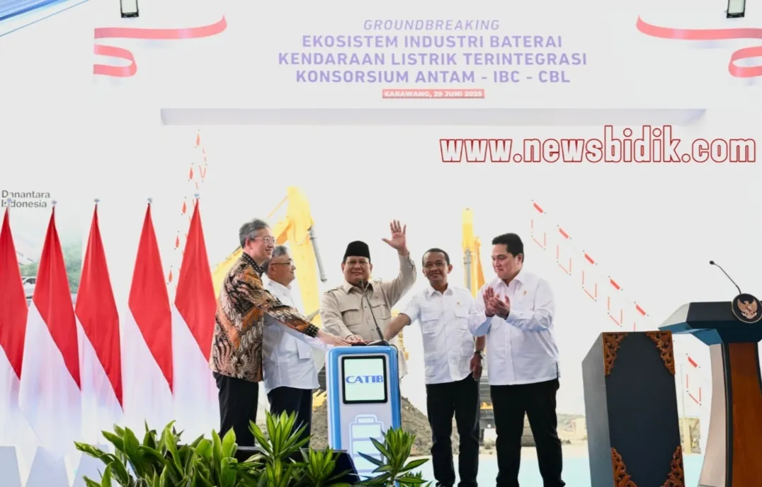 NEWS-BIDIK,//Karawang, Jawa Barat — Presiden Republik Indonesia Prabowo Subianto meresmikan peletakan batu pertama (groundbreaking) pembangunan ekosistem industri baterai kendaraan listrik terintegrasi terbesar di Asia Tenggara, Minggu (29/6/2025), di kawasan Artha Industrial Hills (AIH), Kabupaten Karawang, Jawa Barat.