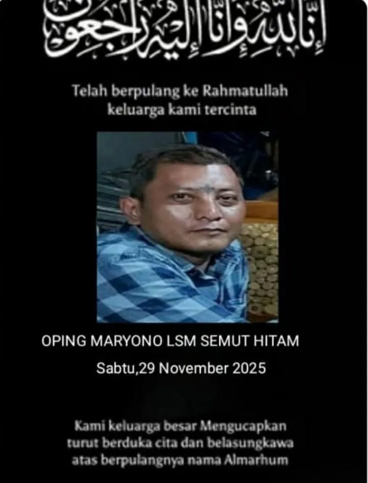 NEWS BIDIK, Brebes — Kabupaten Brebes kembali kehilangan salah satu putra terbaiknya. Aktivis senior Oping Maryono, yang selama puluhan tahun dikenal sebagai pengawas kebijakan publik dan penggerak suara rakyat kecil, wafat pada Sabtu (29/11/2025) pukul 15.00 WIB di kediamannya.