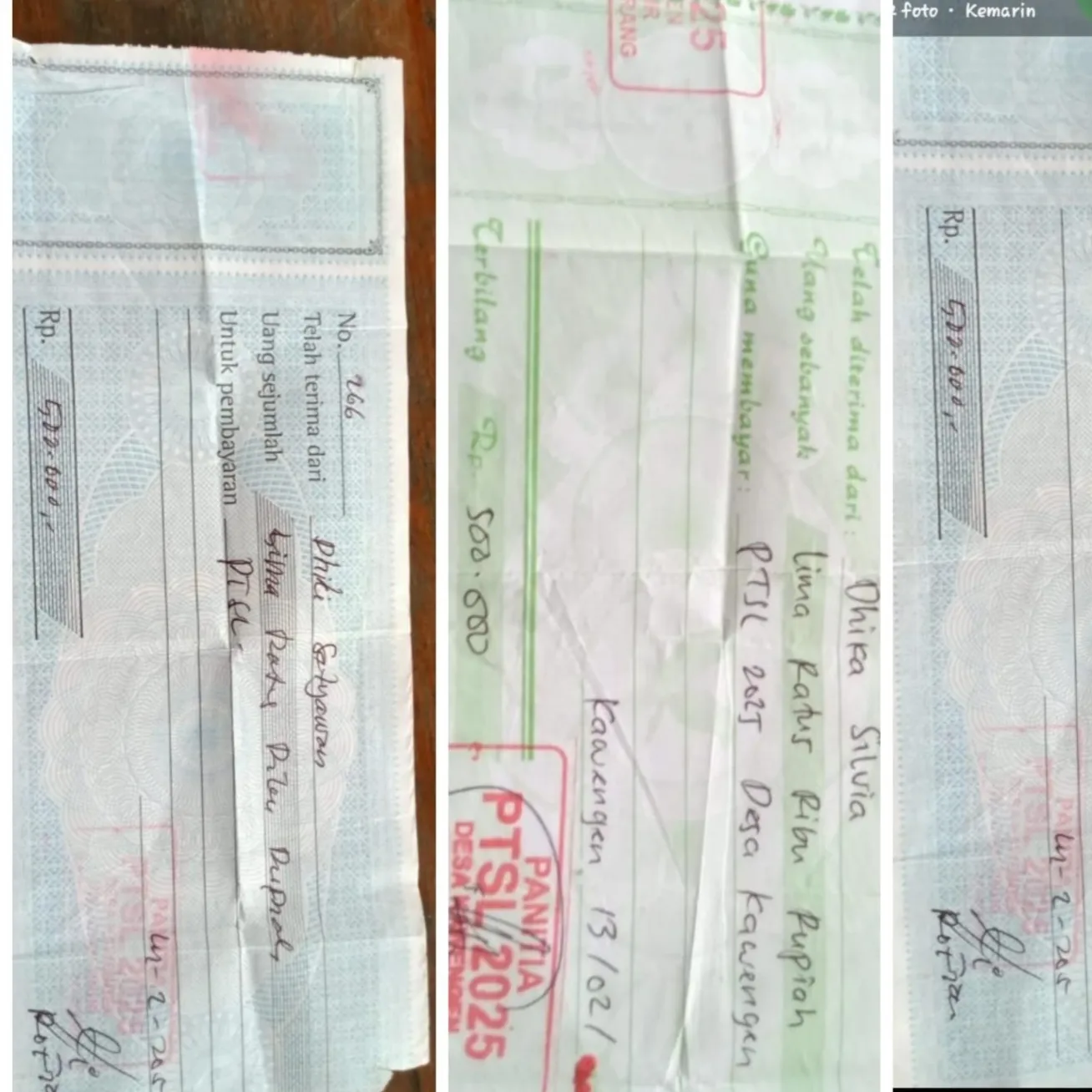 Informasi yang dihimpun media menyebutkan, ratusan warga dari RW 1 hingga RW 5 dipungut biaya sebesar Rp500.000 per bidang tanah. Warga bahkan menerima bukti kwitansi berstempel panitia PTSL 2025 Desa Kawengen. Nilai pungutan ini dinilai tidak sesuai dengan ketentuan resmi yang diatur dalam SKB Tiga Menteri, sekaligus menimbulkan tanda tanya mengingat kasus serupa di berbagai daerah juga kerap melibatkan pungutan di atas tarif yang diperbolehkan.