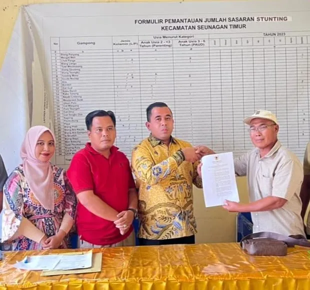 SK Bupati di serahkan Tim terpadu monitoring, evaluasi perizinan dan non perizinan Pemkab Nagan Raya melalui Camat Seunagan Timur Said mudhar, M.Pd.,MM di aula kantor camat Seunagan Timur di terima oleh Suharto manajer PT mon jambe