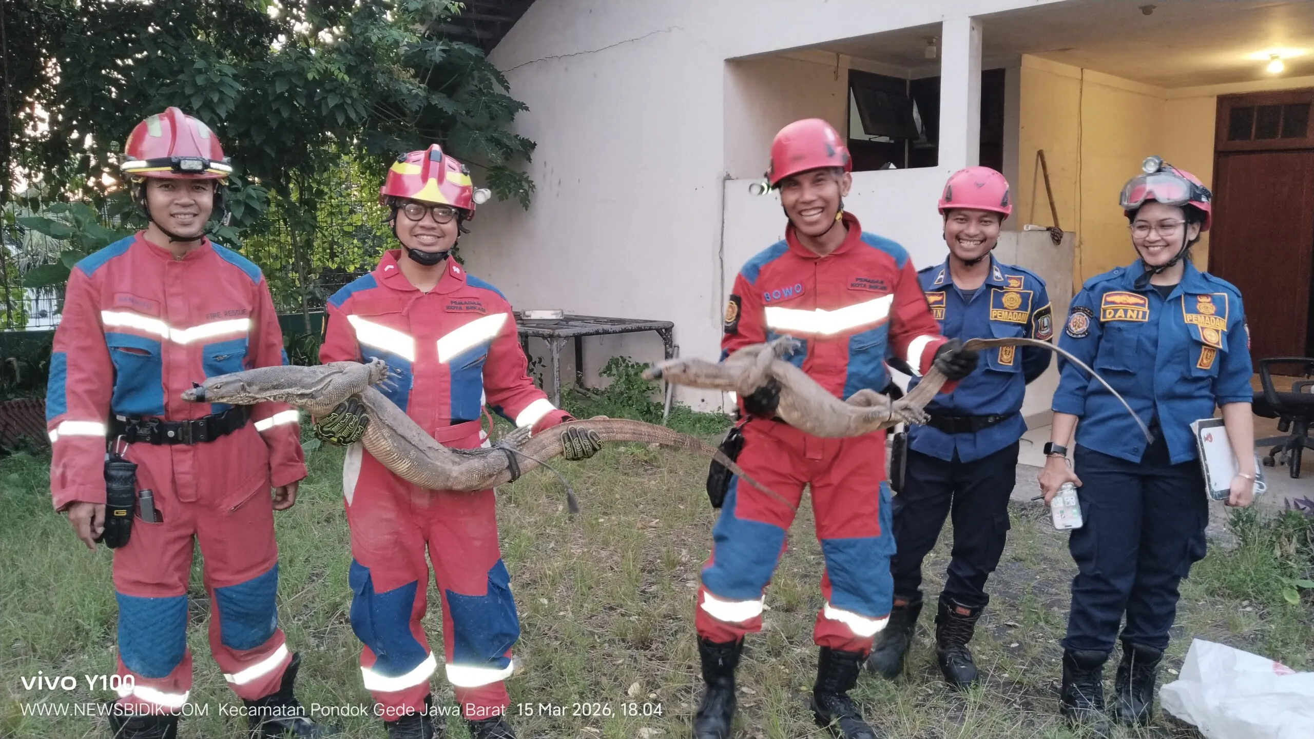 NEWSBIDIK, Kota Bekasi — Petugas Dinas Pemadam Kebakaran dan Penyelamatan (Disdamkarmat) Kota Bekasi berhasil mengevakuasi dua ekor biawak berukuran besar yang masuk ke area fasilitas ibadah musala milik warga di kawasan Jatibening, Kota Bekasi. Proses evakuasi tersebut dilakukan setelah adanya laporan dari pemilik rumah yang merasa khawatir dengan keberadaan satwa liar tersebut di sekitar bangunan musala.