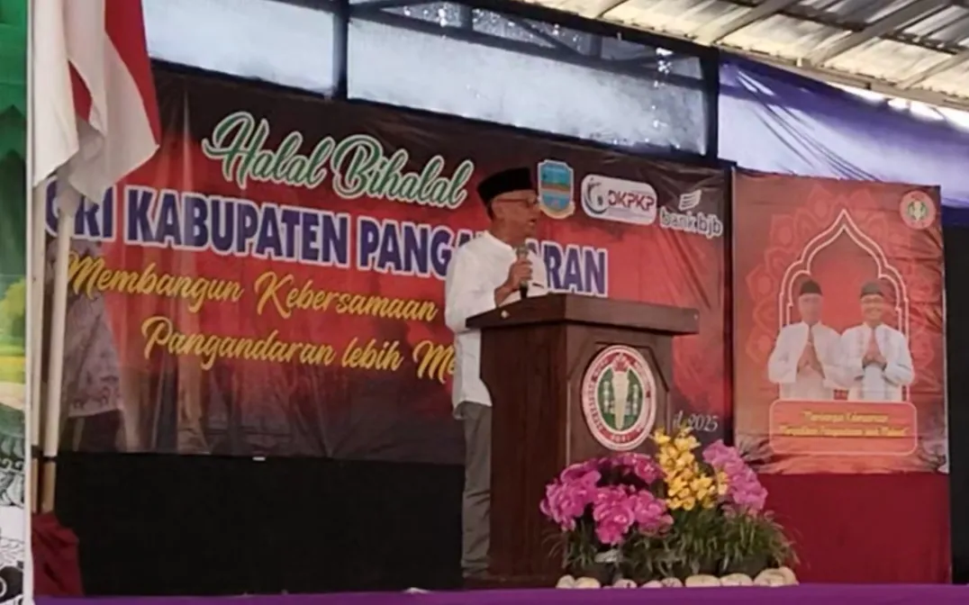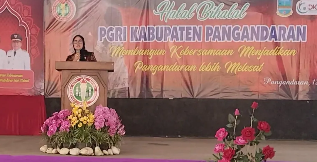 NEWS-BIDIK.COM // Dalam momen semangat kebersamaan pasca Idul Fitri 1446 H, Persatuan Guru Republik Indonesia (PGRI) Kabupaten Pangandaran, Jawa Barat, menggelar acara Halal Bihalal yang berlangsung meriah, bertempat di Aula SMAN 1 Pangandaran, Sabtu (12/04/2025). Acara ini dihadiri oleh berbagai tokoh penting Daerah, termasuk Bupati Pangandaran Hj. Citra Pitriayami, S.H., unsur Forum Komunikasi Pimpinan Daerah (Forkopimda), Ketua PGRI Kabupaten Pangandaran H. Dodi DJubardi, M.Pd., para pengurus PGRI, serta Kelompok Kerja Kepala Sekolah (K3S) dan MKKS SMP Se-Kabupaten Pangandaran.