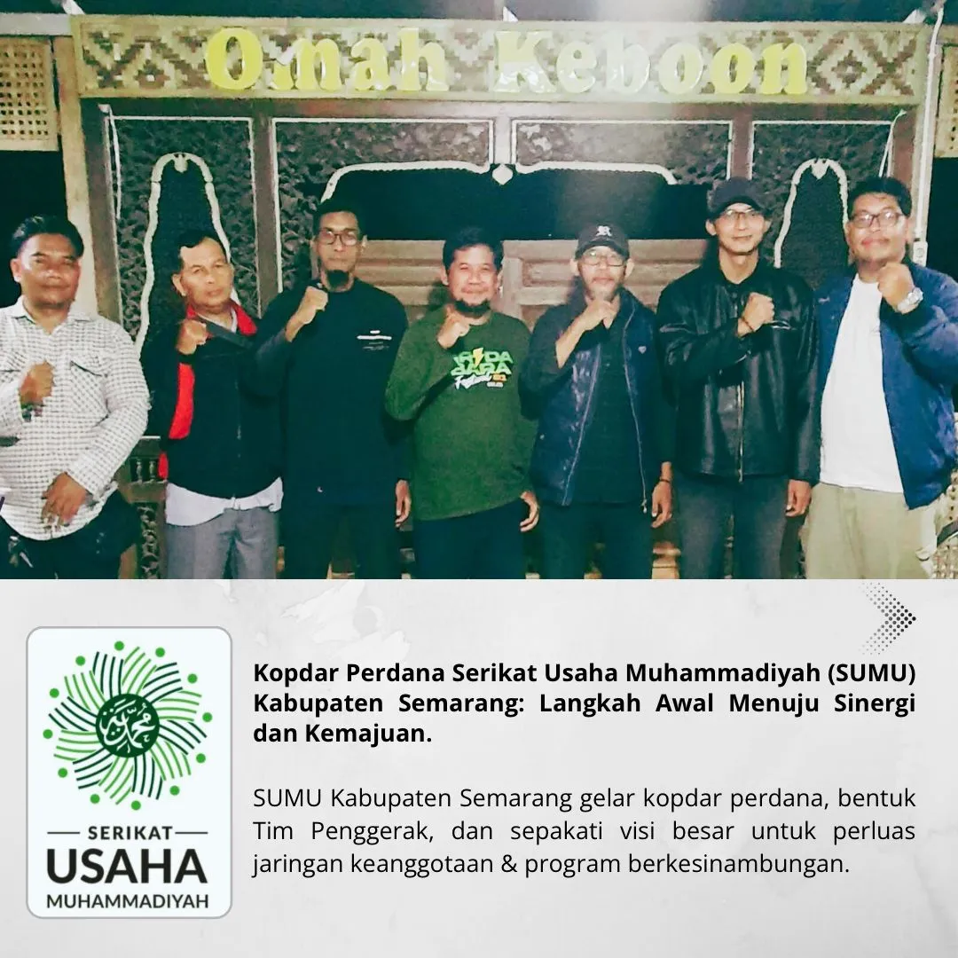 NEWS-BIDIK,//Semarang,- Serikat Usaha Muhammadiyah (SUMU) Kabupaten Semarang resmi menggelar kopi darat (kopdar) perdana yang menjadi tonggak awal pembentukan jaringan pengusaha Muhammadiyah di daerah tersebut. Bertempat di Angkringan Kebon Ombo milik Pak Sudarmanto, salah satu anggota SUMU, pertemuan ini menjadi titik mula konsolidasi dan kolaborasi antar pelaku usaha di bawah naungan Muhammadiyah. Senen, (28/4/2025).